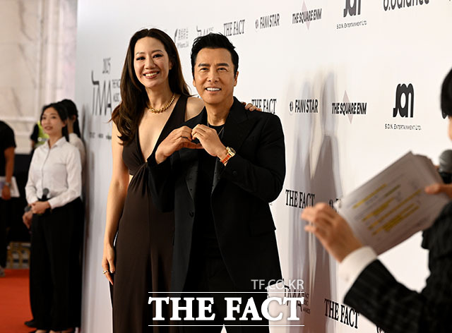 [더팩트ㅣ이효균·배정한 기자] <더팩트>가 주최하고 팬앤스타와 더스퀘어이엔엠이 주관하는 '2025 더팩트 뮤직 어워즈(THE FACT MUSIC AWARDS, TMA)'가 20일 오후 '마카오 아웃도어 퍼포먼스 베뉴'에서 열린 가운데 세계적인 액션배우 겸 감독 견자단(오른쪽)과 아내 씨실리아 웡(Cecilia wang)이 레드카펫을 밟고 있다.